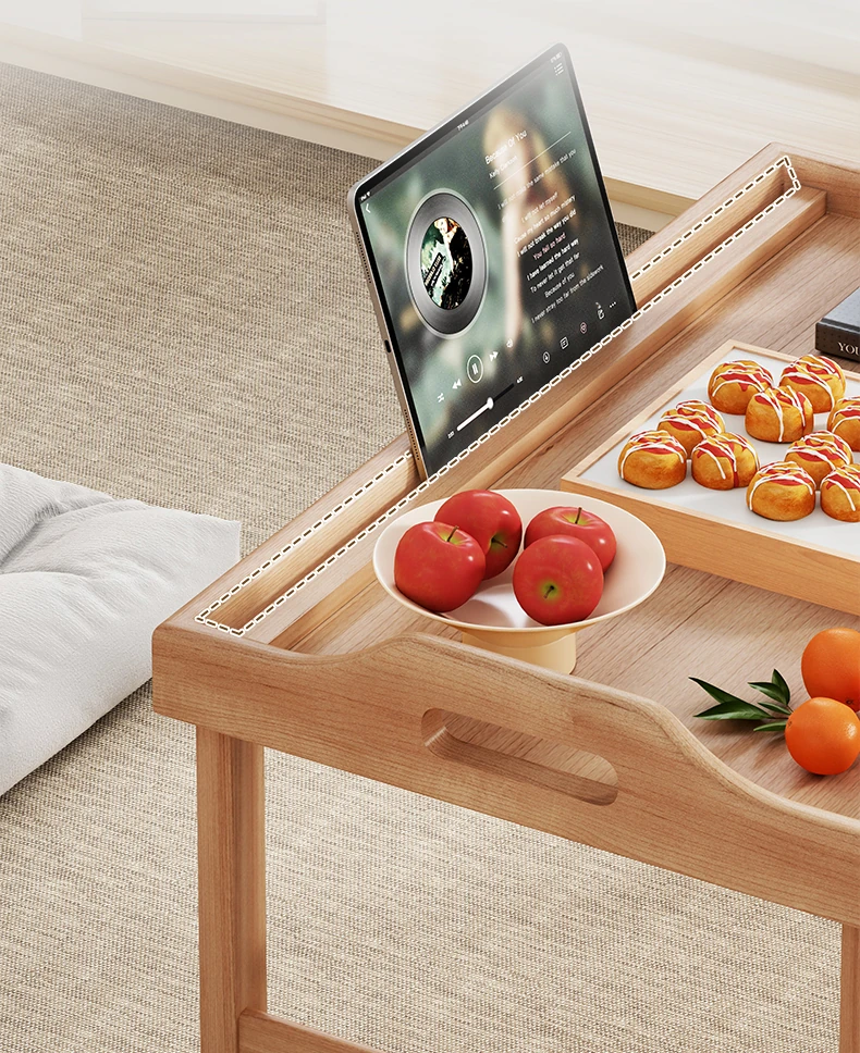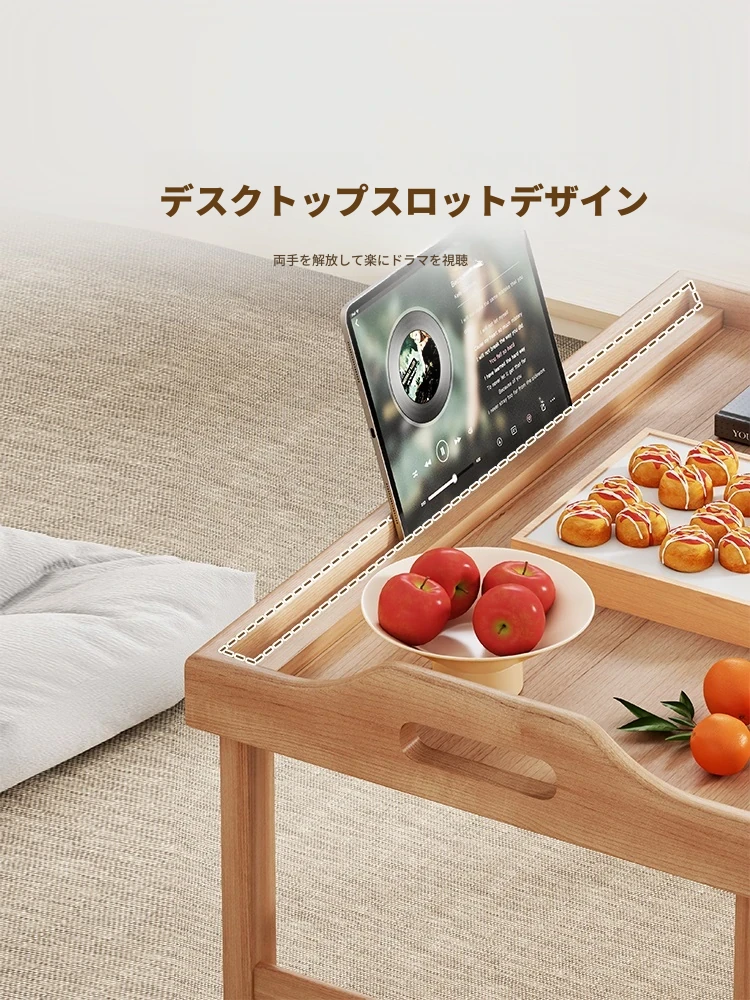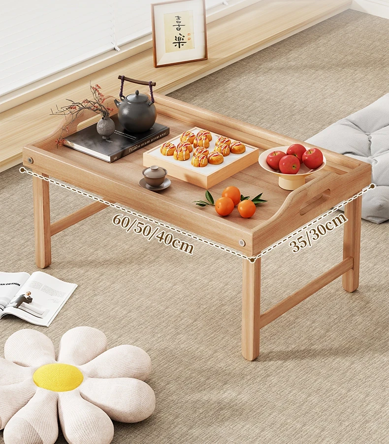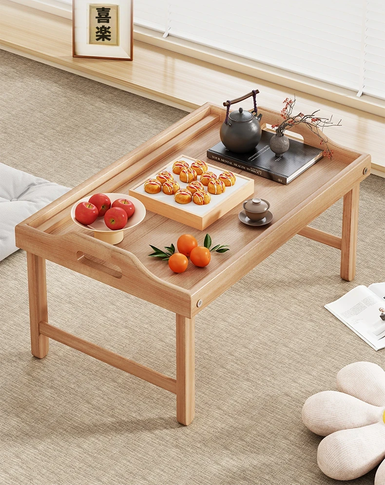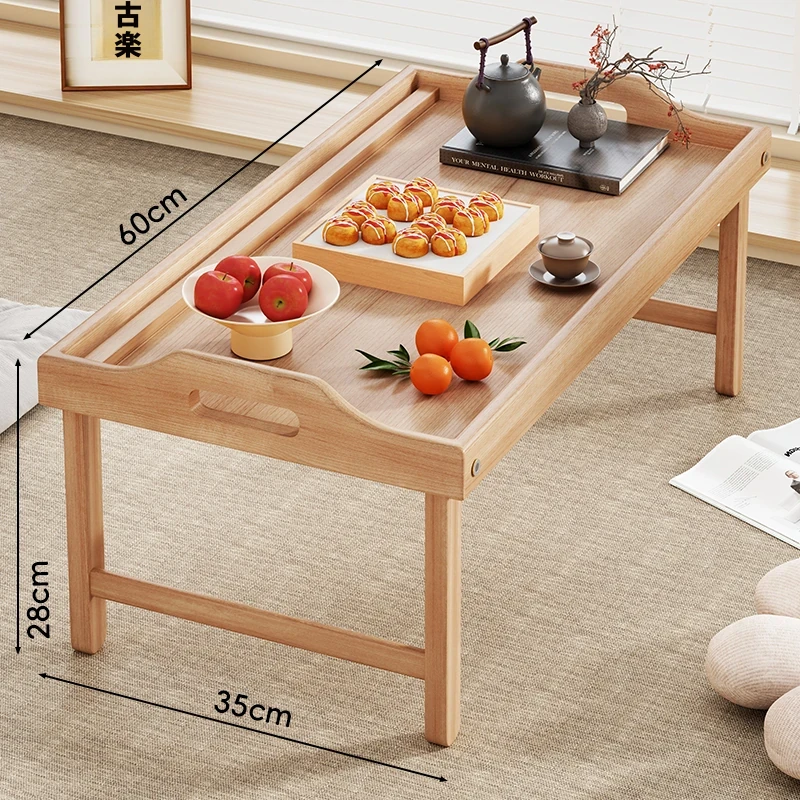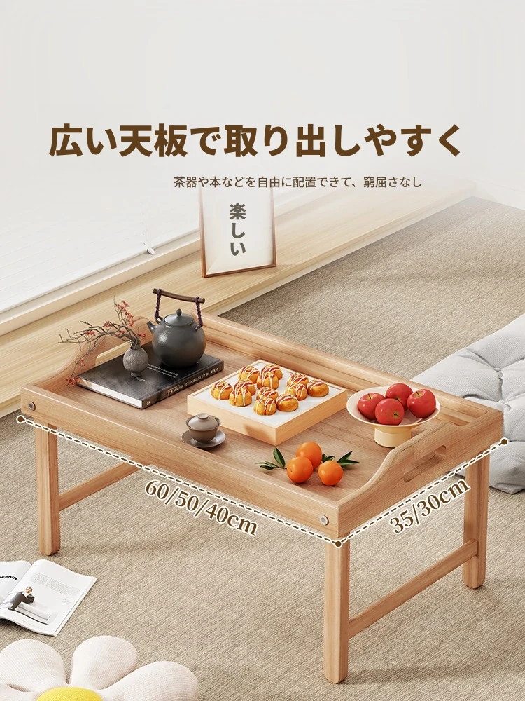 折りたたみ式の和風小茶卓 - 家庭用、窓辺やベッド上に最適!省スペースで使いやすく、おしゃれなデザインが魅力の畳用テーブル。リラックスタイムを演出する、機能性と美しさを兼ね備えたアイテムです。