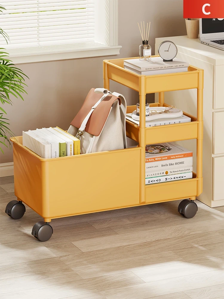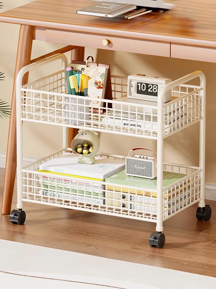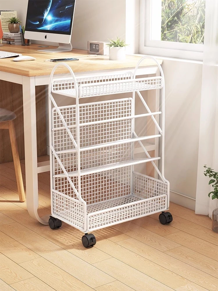 キャスター付きデスクサイド収納ラック - 移動可能な小型書棚、学生向け教室用の分層キャビネット!整理整頓が簡単で、学習スペースをスッキリさせるアイテムです。