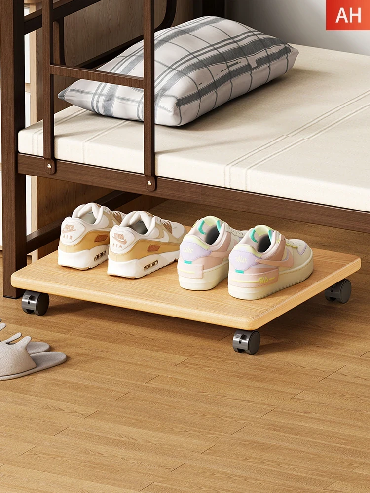 ベッド下靴収納ラック - 寮生活に最適!省スペースで使いやすい木製シューズトレイ。引き出し式で、整理整頓も簡単!小型でも大容量、靴をスッキリ収納して快適な空間を実現!