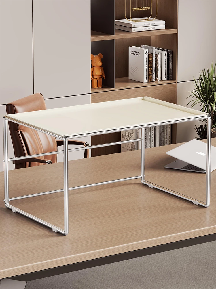 オフィスデスク用多層アイアンシェルフ - コンパクトでスタイリッシュな収納ラック、家庭用にも最適なシンプルなブックキャビネット。デスク上をスッキリ整頓し、作業効率をアップ!